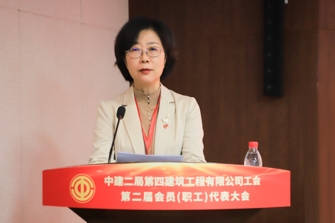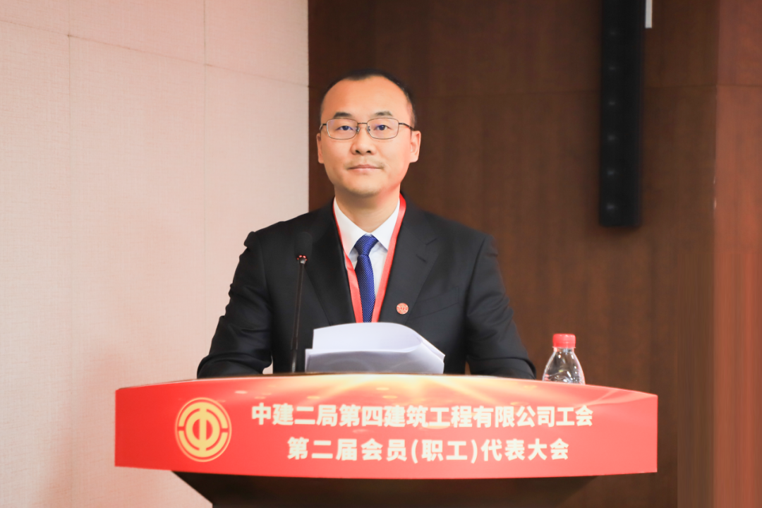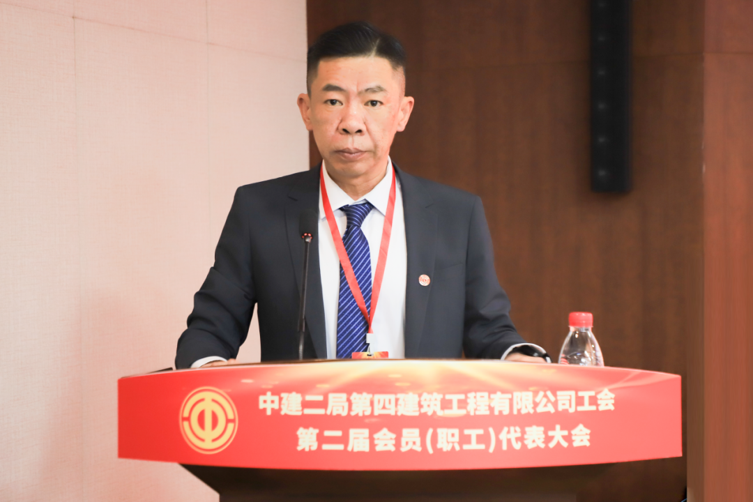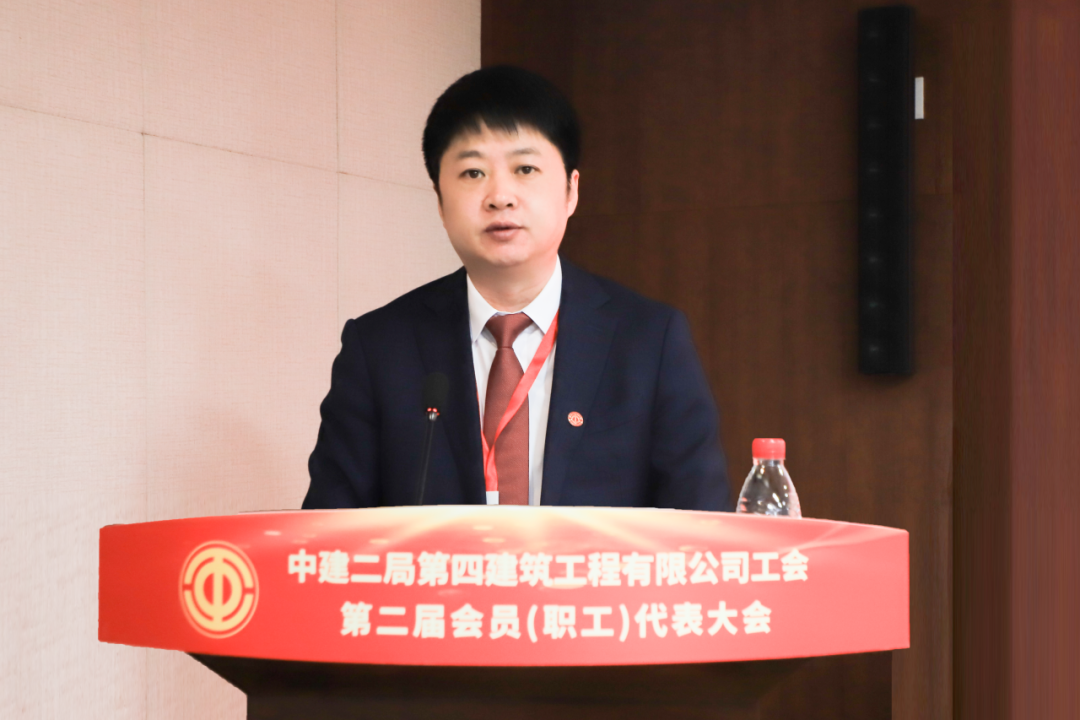 杜建波代表中建二局工會(huì)向大會(huì)的召開(kāi)予以祝賀。他表示,四公司工會(huì)堅(jiān)持以習(xí)近平新時(shí)代中國(guó)特色社會(huì)主義思想為指導(dǎo),深入學(xué)習(xí)貫徹習(xí)近平總書記重要講話和指示批示精神,始終堅(jiān)持融入中心、服務(wù)大局,在工會(huì)系統(tǒng)多個(gè)領(lǐng)域起到示范帶頭作用。四公司工會(huì)和廣大工會(huì)干部要不忘初心、牢記使命,強(qiáng)化思想政治引領(lǐng),持續(xù)深化中國(guó)工會(huì)十八大精神的實(shí)踐運(yùn)用,把牢工會(huì)工作正確方向。深刻把握工會(huì)組織在黨和國(guó)家工作大局中的使命任務(wù),緊密圍繞國(guó)家重大戰(zhàn)略、重大工程、重大項(xiàng)目、重點(diǎn)產(chǎn)業(yè),聚焦局“高品質(zhì)履約年”各項(xiàng)目標(biāo)任務(wù),履行央企社會(huì)責(zé)任,深化產(chǎn)業(yè)工人隊(duì)伍建設(shè)改革,堅(jiān)持服務(wù)職工為本,滿足職工群眾對(duì)美好生活的需要,提升廣大職工幸福指數(shù),提高工會(huì)工作能力和水平。