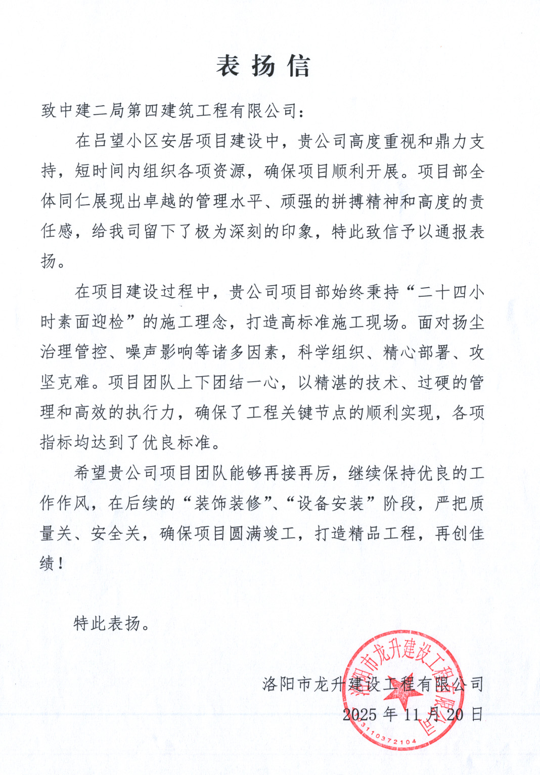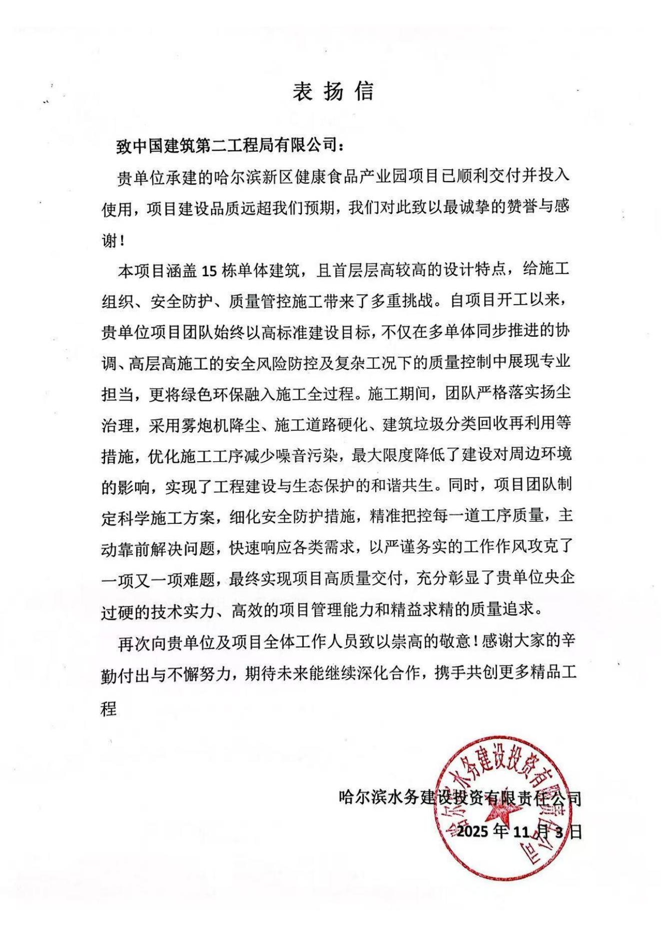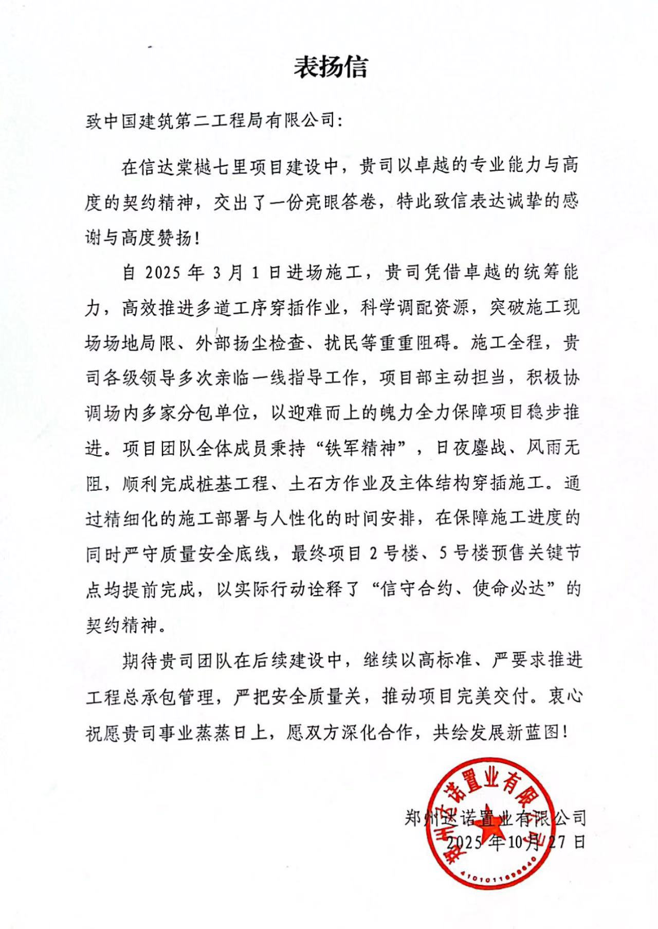 百日齊攻堅 奮戰四季度丨含“贊”量極高!中建二局四公司高品質履約收獲大批表揚信