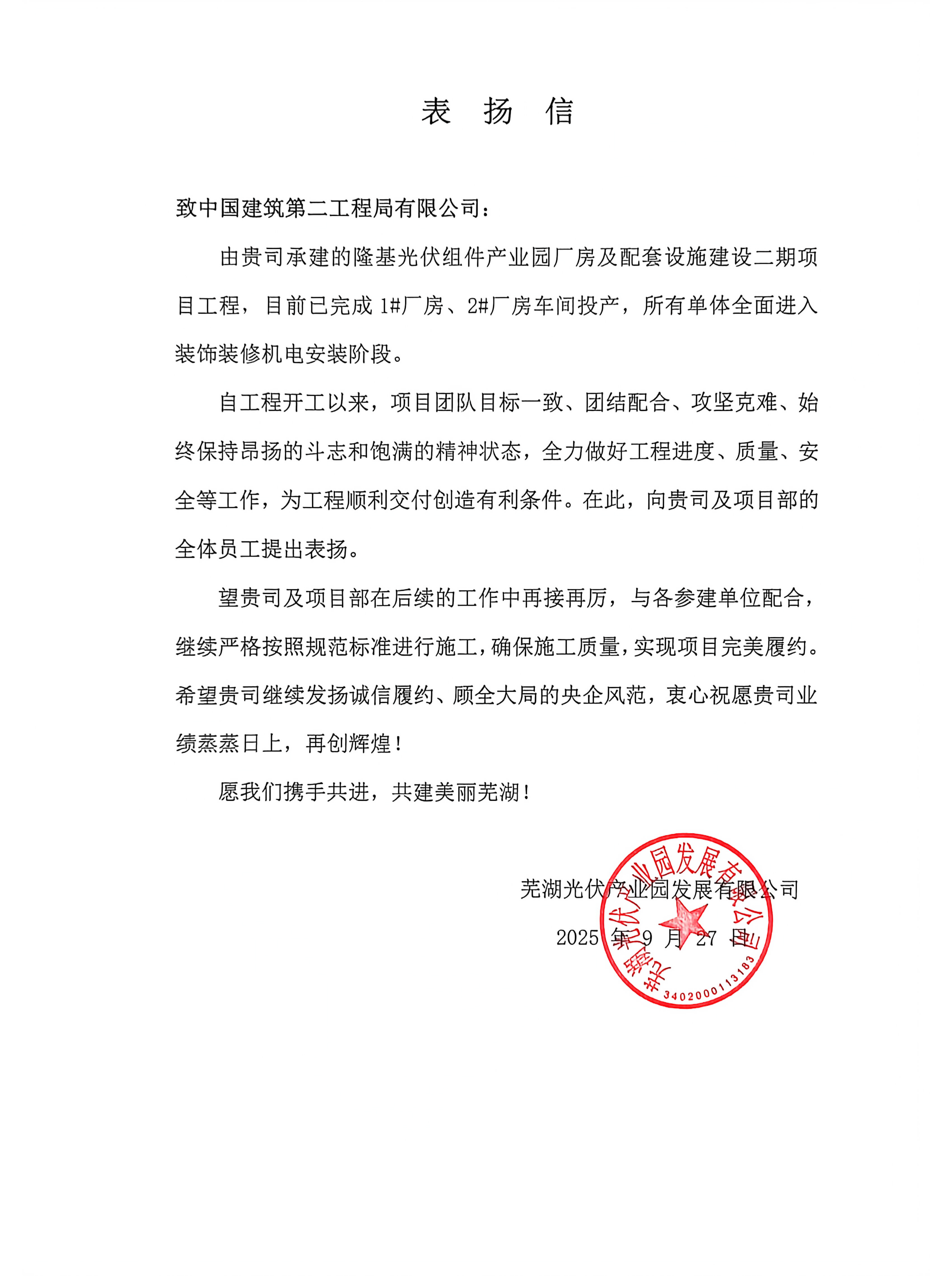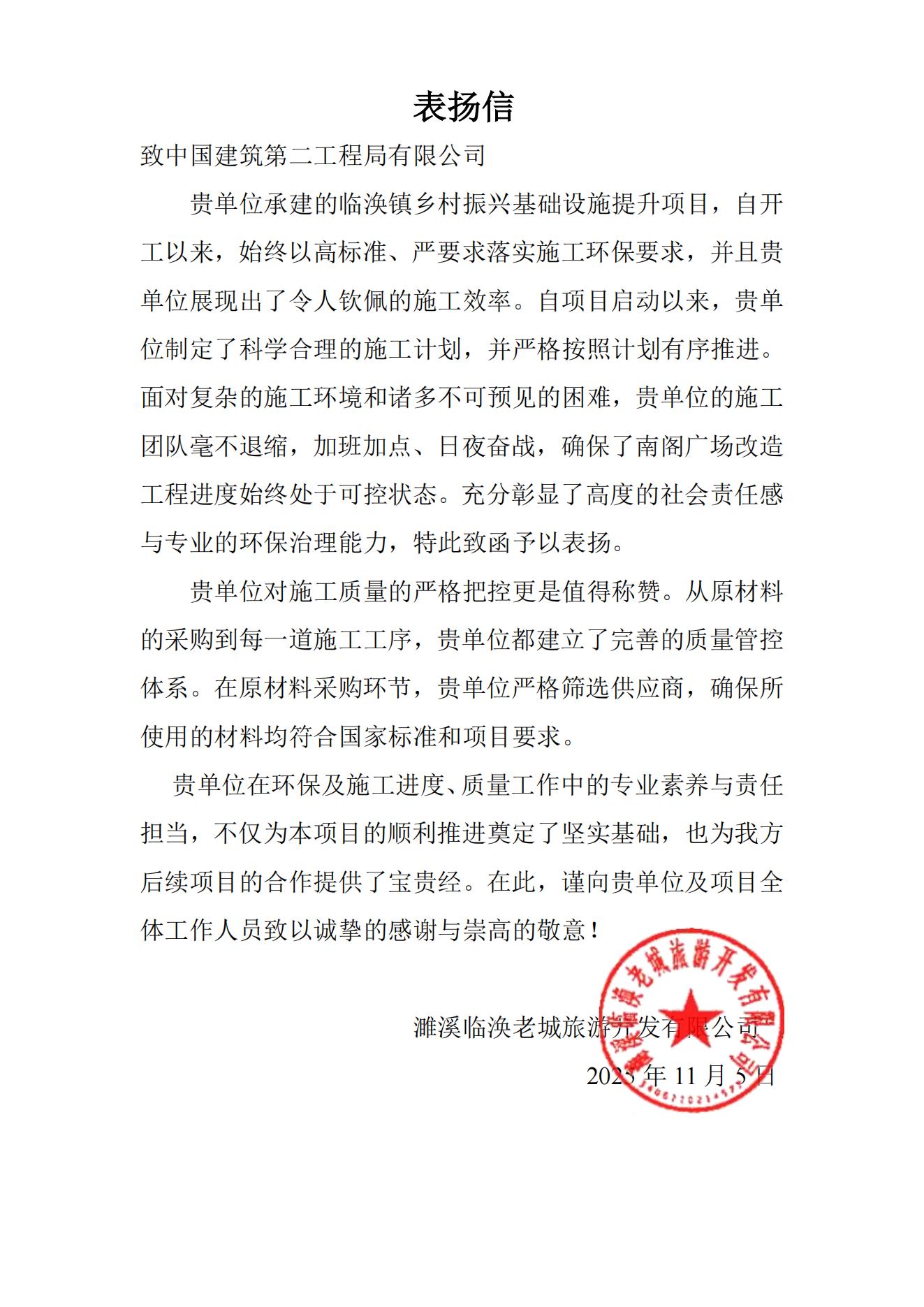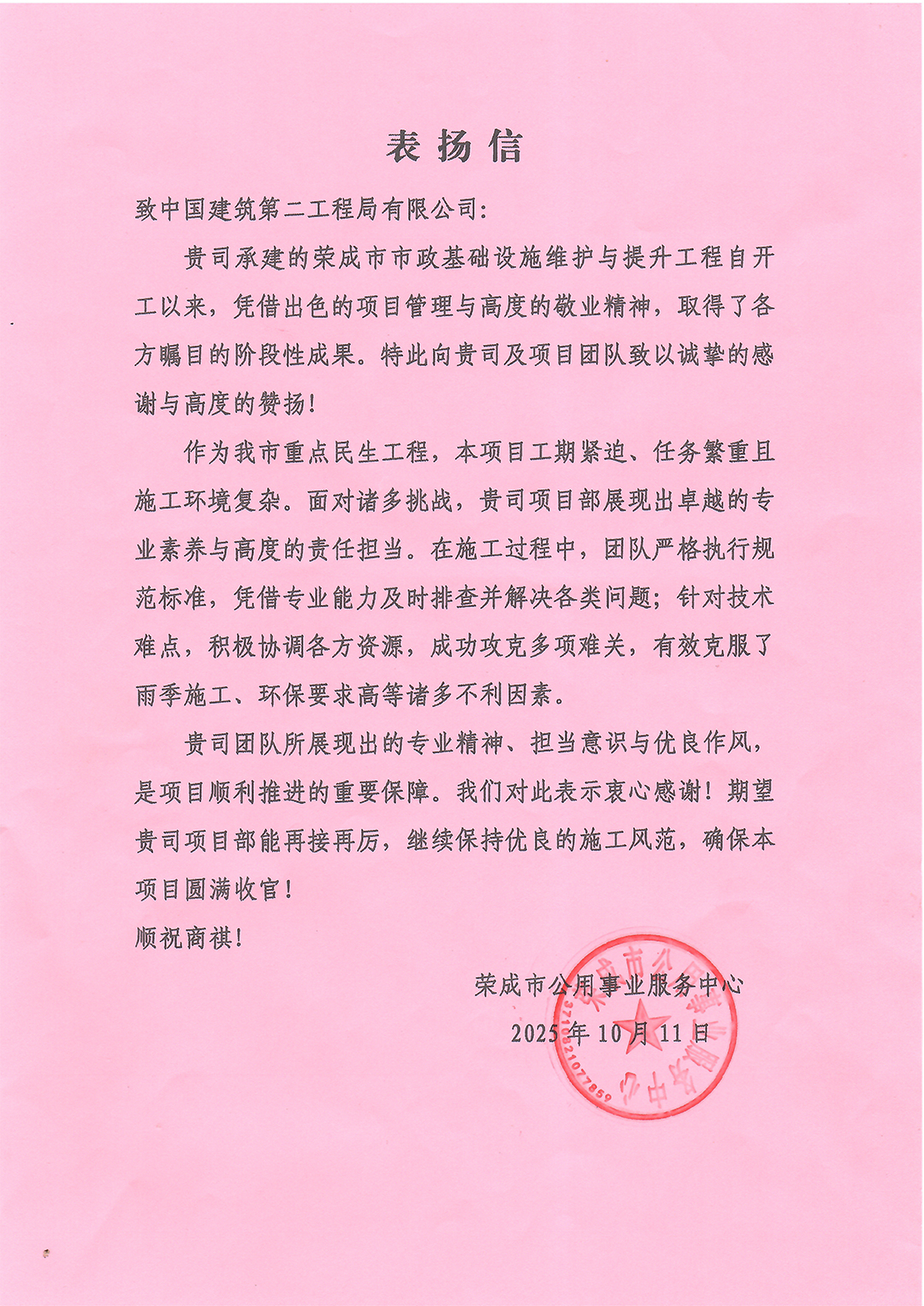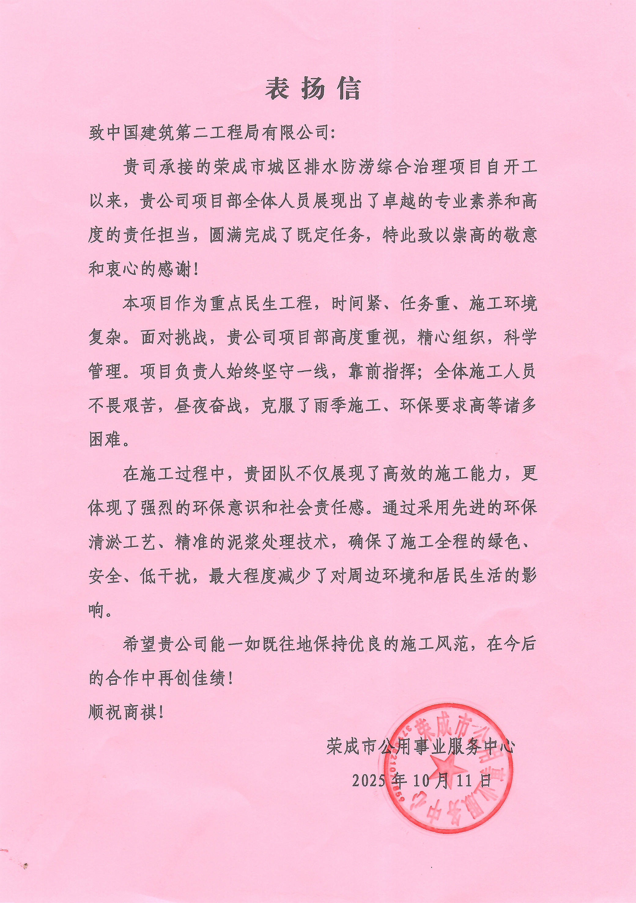 百日齊攻堅 奮戰四季度丨含“贊”量極高!中建二局四公司高品質履約收獲大批表揚信
